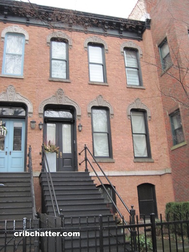 There is an all brick exterior to the row home with a bluestone walkway and back patio.